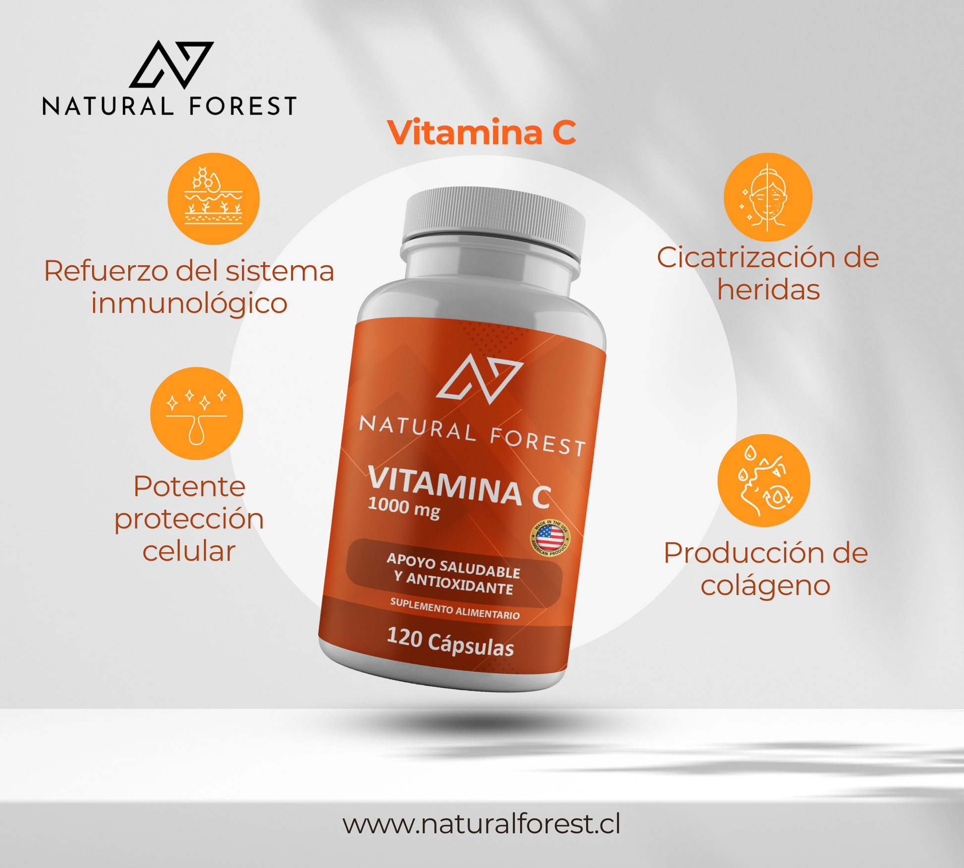 Refuerzo del sistema inmunológico: La vitamina C es conocida por su capacidad para fortalecer las defensas naturales del cuerpo. Puede ayudar a reducir la duración y severidad de infecciones, manteniéndote saludable durante todo el año.