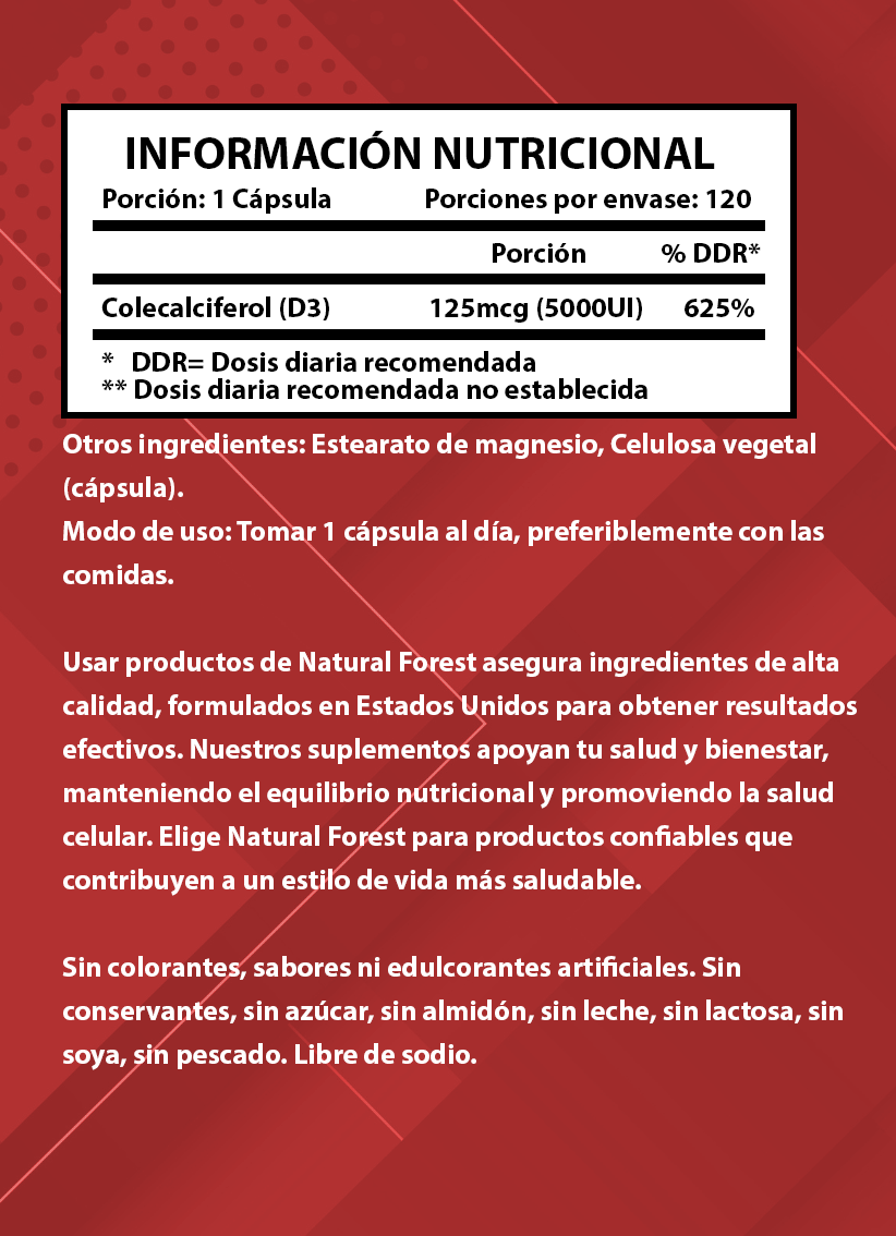 Vitamina D3 5000ui 120 Cápsulas / Natural Forest Usa